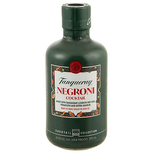 Experience a delicious, ready-to-serve Tanqueray Negroni Cocktail. Part of the ready-to-serve Cocktail Collection and made with Tanqueray London Dry Gin. On the nose are notes of orange zest, dried cherries, and spicy coriander. On the palate are notes of red vermouth, juniper, and amaro with a slightly bitter finish of red berries, citrus peel, and herbal botanicals. Just open and serve for a bitter-and-sweet cocktail. Includes one 24.9% alc./vol. 375 mL bottle of Tanqueray Negroni Cocktail. Please drink responsibly.