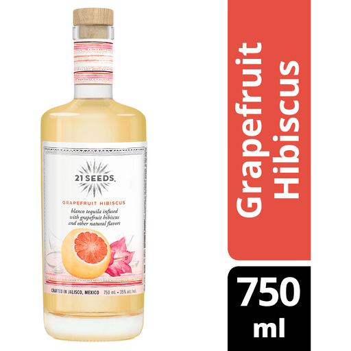 Experience the flavor of simplicity with 21Seeds Grapefruit Hibiscus Infused Tequila. With soft, citrus-forward notes and a floral hint, our tequila blanco is infused with the juice of real fruit for a fruity taste without being sugary. 21Seeds crafts its award-winning tequila alcohol by slow cooking agaves from Jalisco. Our tequila undergoes meticulous double distillation and cold filtering that bestows it with a clear, smooth blanco base. Best enjoyed in a Seed & Soda cocktail. 21Seeds Grapefruit Hibiscus (Blanco Tequila Infused with Juice of Real Fruit & Natural Flavors) was awarded a Gold Medal in 2021 at the Bartender Spirits Awards. Includes one 70 proof 750 mL bottle of 21Seeds Grapefruit Hibiscus Infused Tequila. Please drink responsibly.